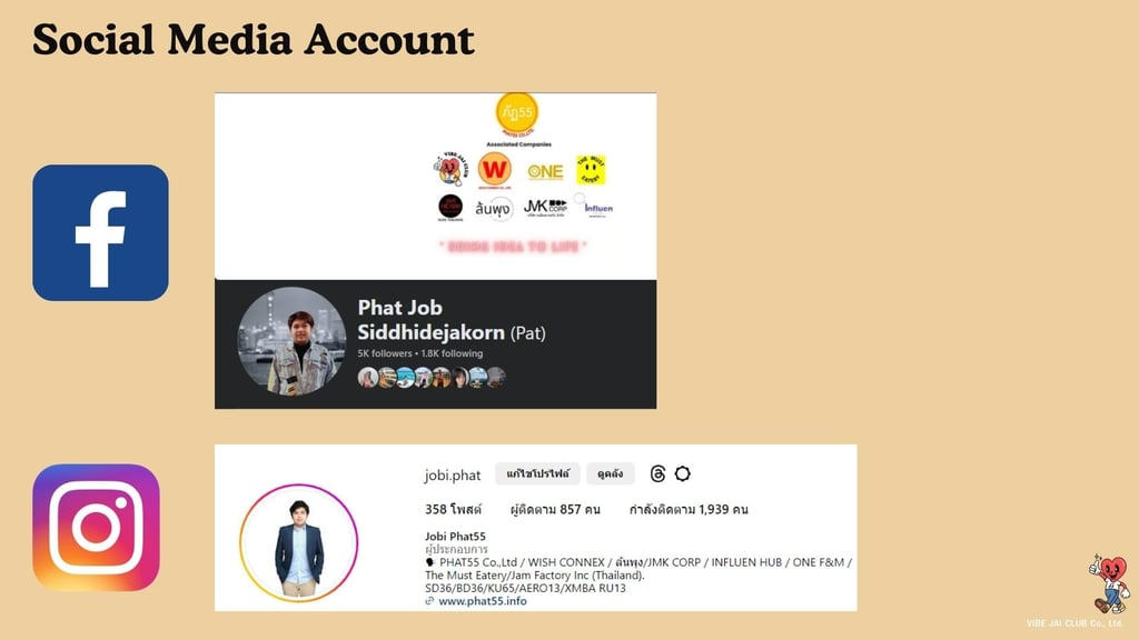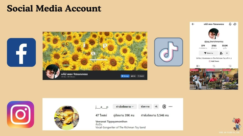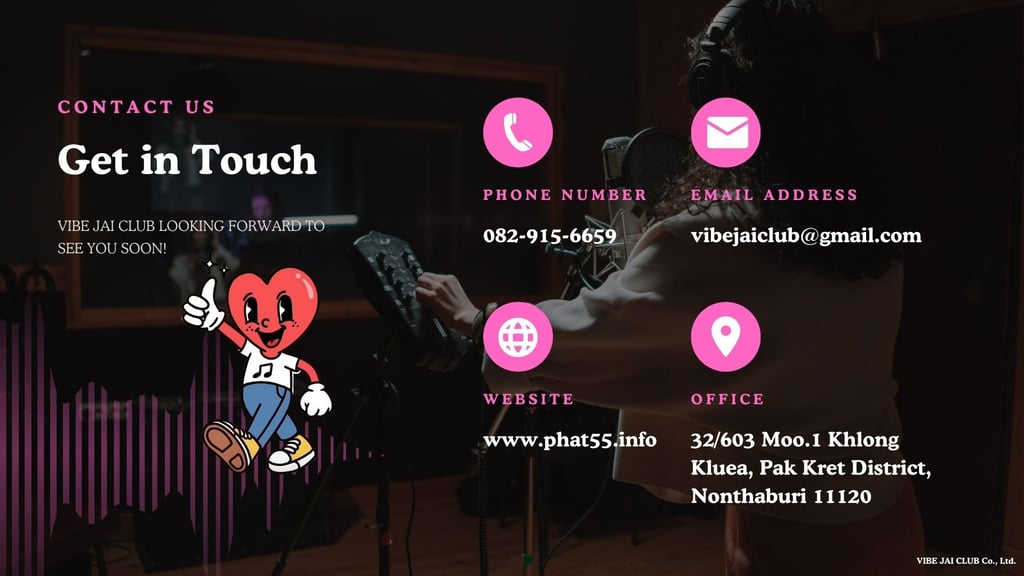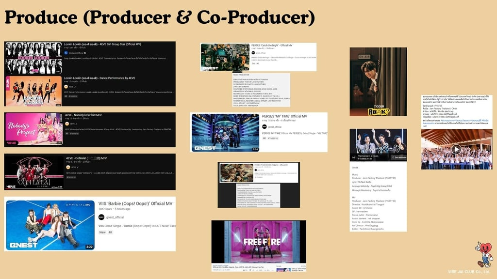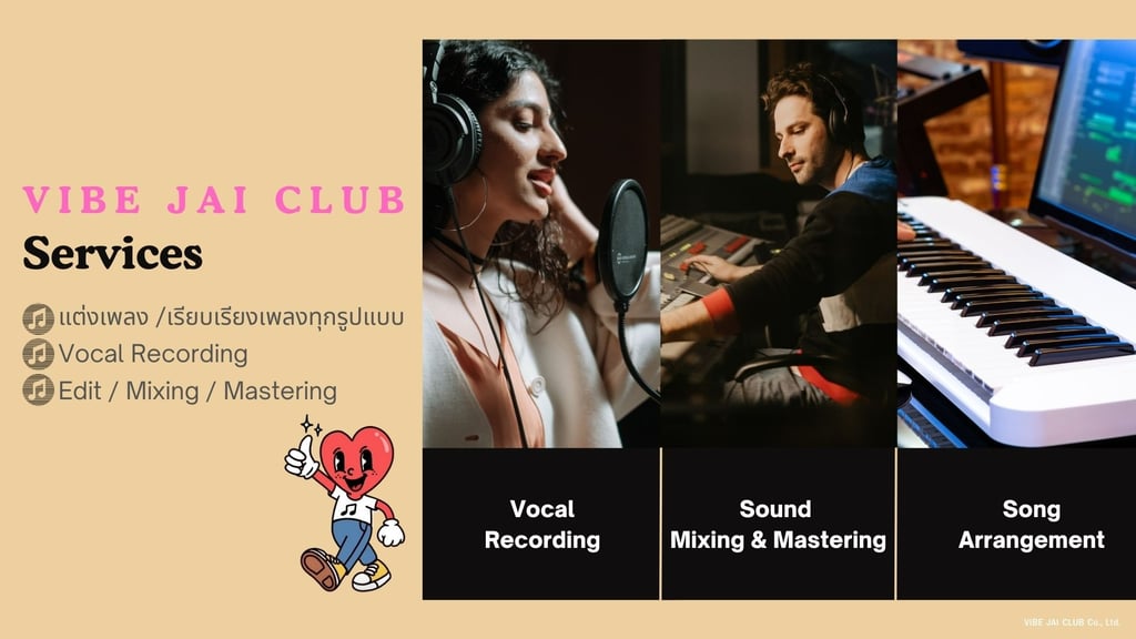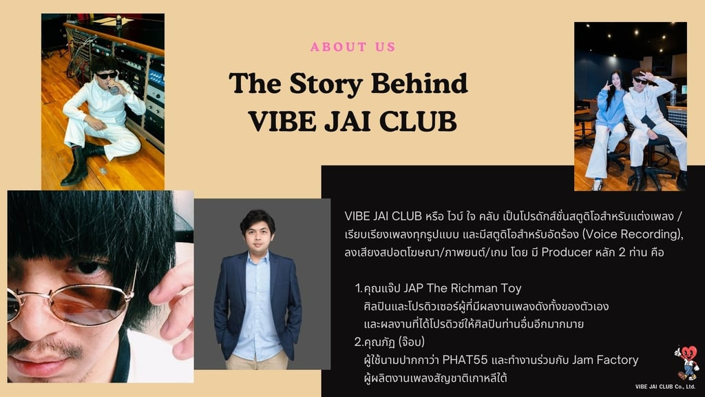 VIBE JAI CLUB หรือ ไวบ์ ใจ คลับ เป็นโปรดักส์ชั่นสตูดิโอสำหรับแต่งเพลง /เรียบเรียงเพลงทุกรูปแบบ และมีสตูดิโอสำหรับอัดร้อง (Voice Recording), ลงเสียงสปอตโฆษณา/ภาพยนต์/เกม โดย มี Producer หลัก 2 ท่าน คือ